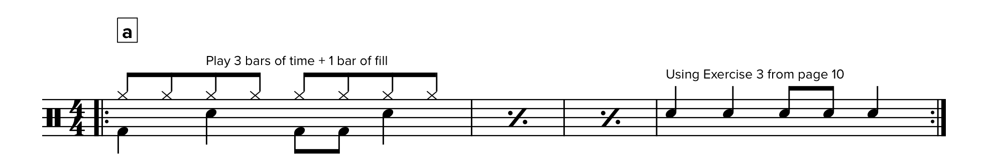 Record any three rhythms as fills (3 bars time + 1 bar fill).