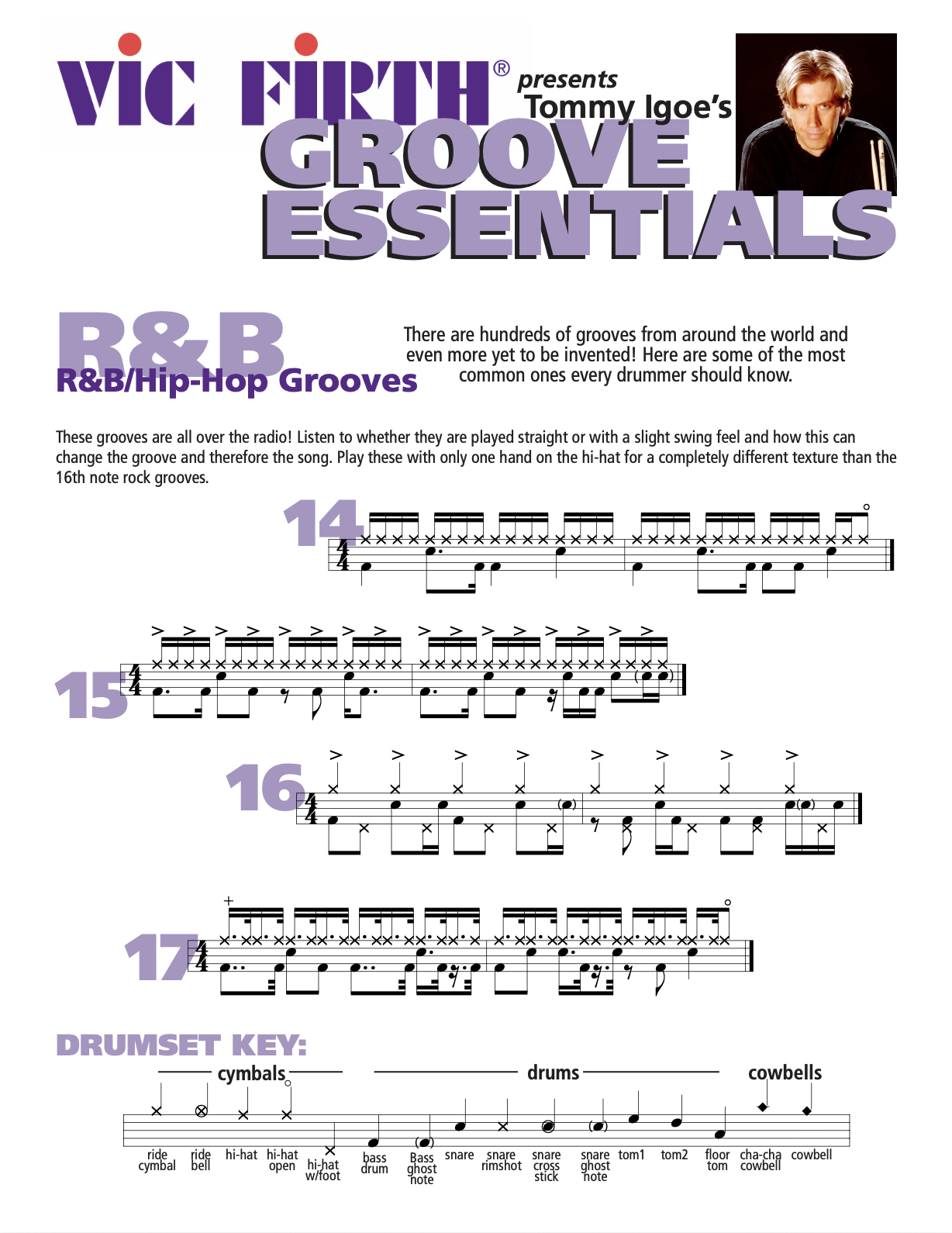 Demonstrate 3 R&B / Hip Hop grooves from Groove Essentials.