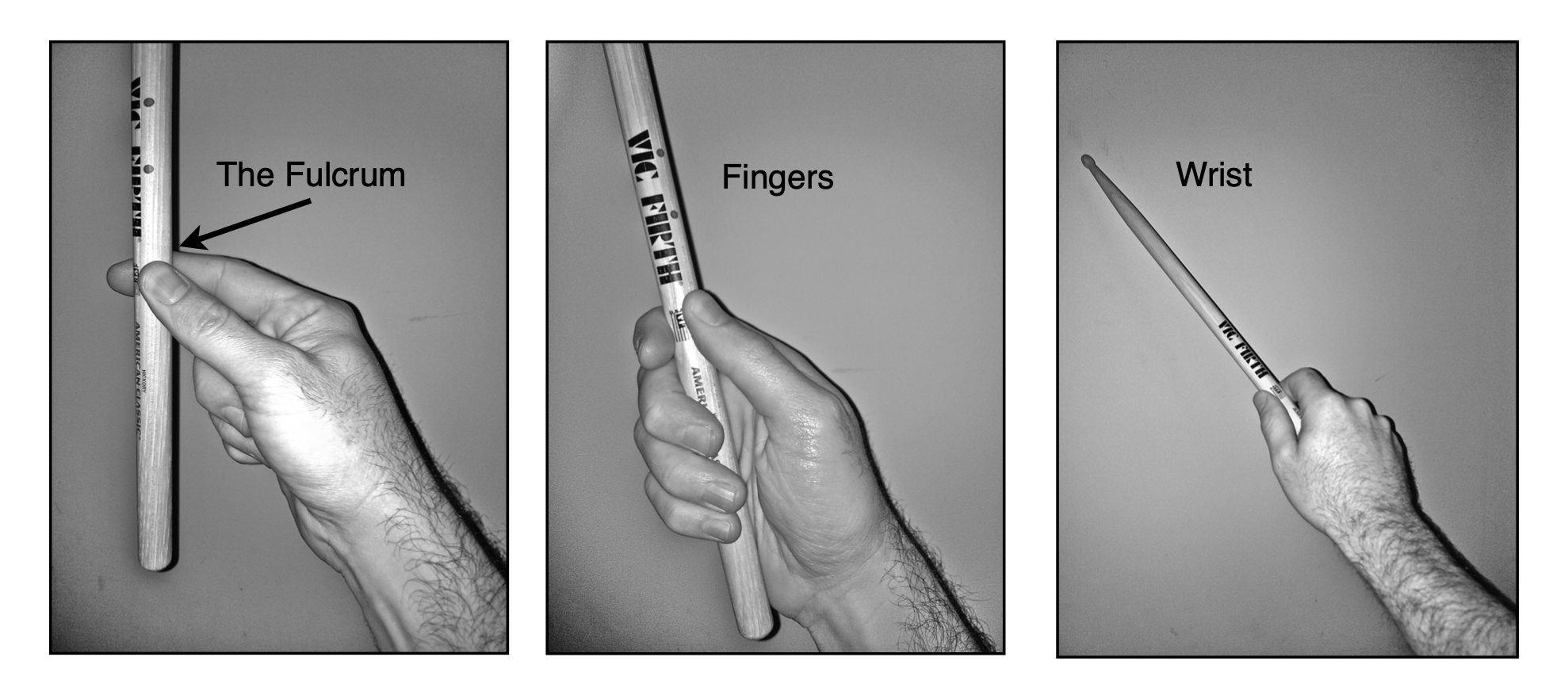 Demonstrate the matched grip and traditional grip in German and French positions.