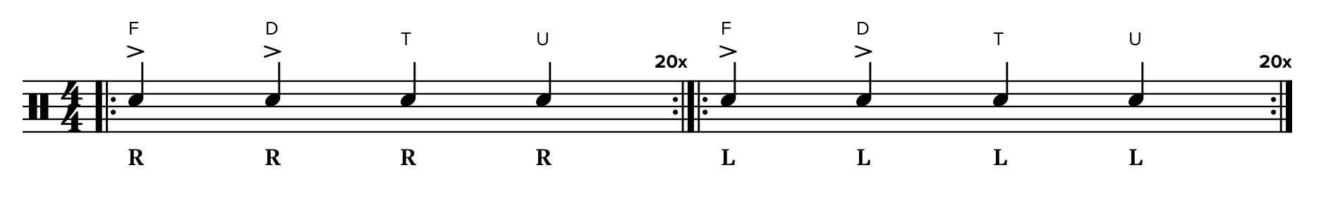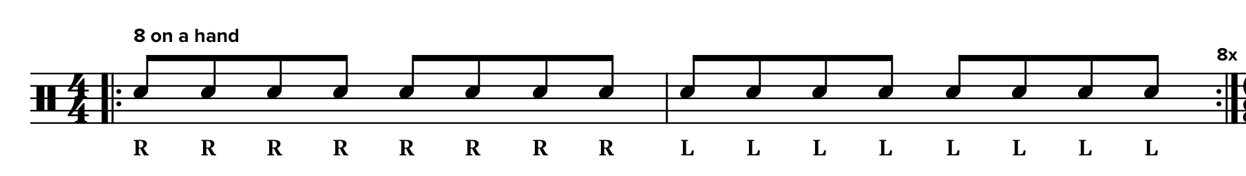 Play the exercises in Stick Control (pg. 5, 6, 7) R = RRR, L = LLL using the fingers.